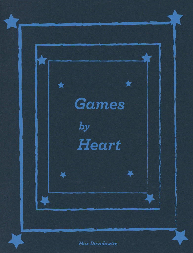 From the Publisher: Games by Heart by Max Davidowitz is a collection of games that do not require any materials. This book is a minimalist exercise expanding on our nature to play. Think of these games as templates. The more house-rules, spinoffs, or completely new games you create the better! These rules were meant to be broken.